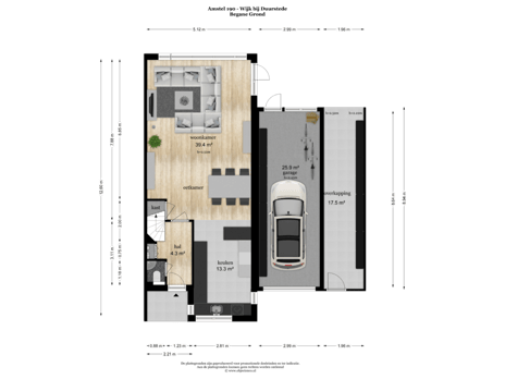 De verlengde garage is 26 m² groot met aan de voorzijde voorzien van een sectional garagedeur met afstandsbediening. Een ideale ruimte voor auto, motoren en/of andere hobby’s. Ook een praktijk of werken aan huis biedt tot de mogelijkheden! Praktisch is ook de grote aangebouwde schuur naast de garage van 17 m² voor extra opslag/bergruimte, alsmede een achterom.