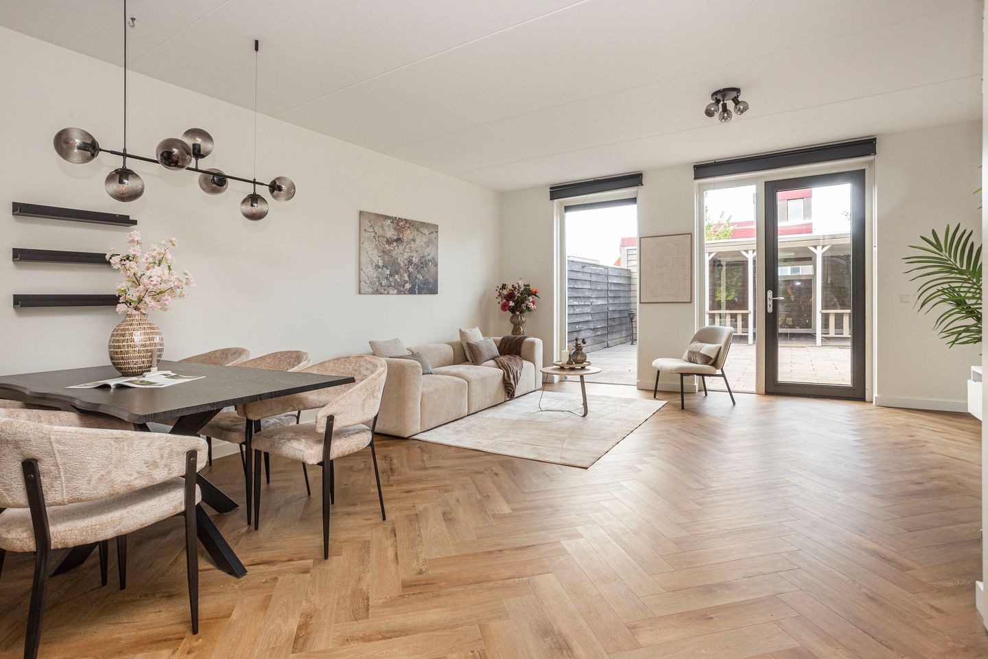 Entree met hal, meterkast en modern toilet met wandcloset en fontein. De woonkamer is tuingericht en heerlijk licht dankzij de grote ramen. Vanuit hier stap je zo de zonnige tuin in, compleet met overkapping, achterom, berging en zonnescherm. De open keuken is voorzien van een moderne opstelling inclusief 5-pits gaskookplaat, combi-oven, koelkast, afzuigkap en nieuwe Bosch vaatwasser (2024). De PVC vloer met vloerverwarming en de in 2025 nieuw aangebrachte plinten maken de luxe afwerking compleet.