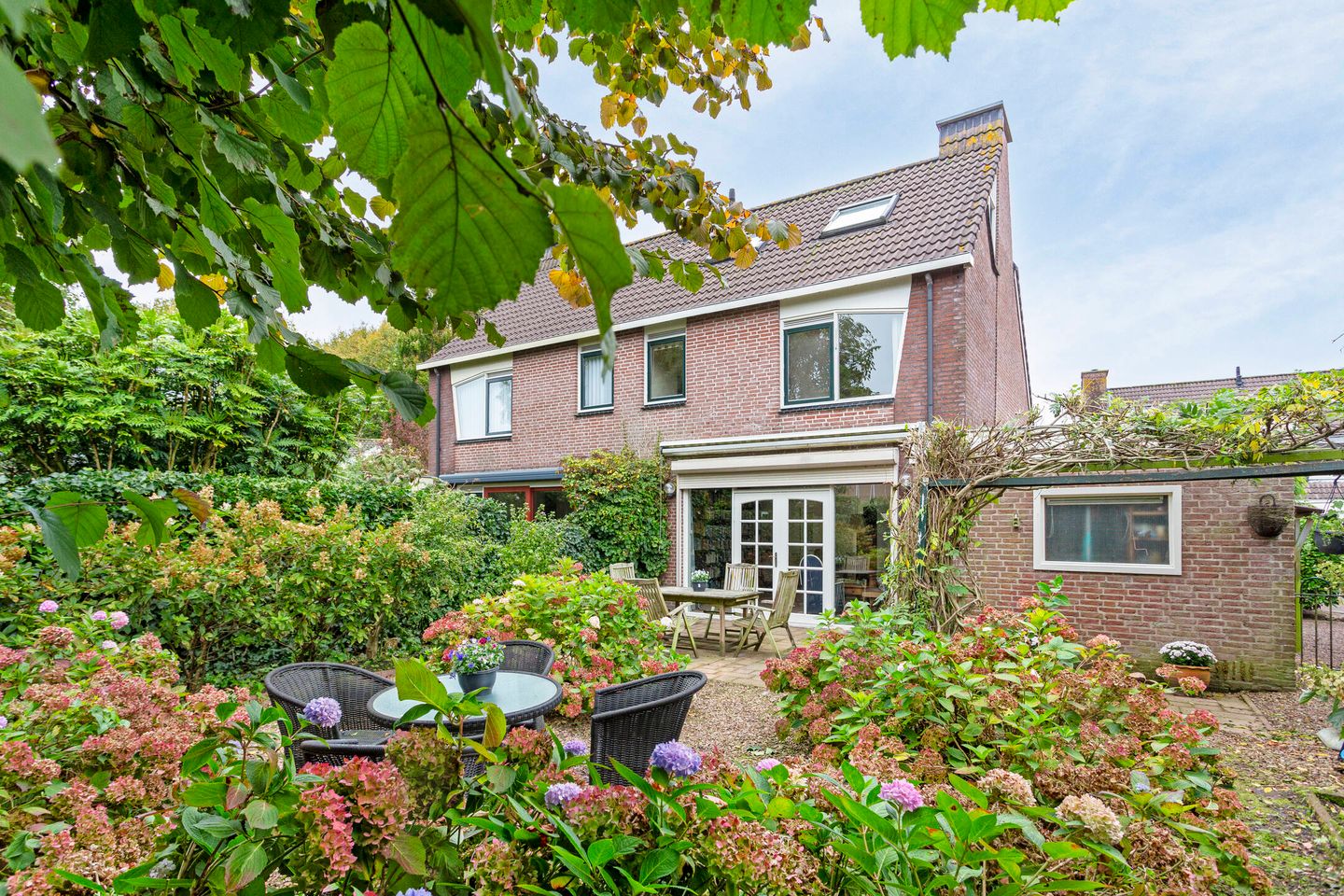 De woning valt direct op door sfeervolle details als de erker aan de voorzijde en de elegante koperen dakkapel. Binnen geniet je van een lichte, tuingerichte woonkamer met een warme open haard, visgraat pvc-vloer en openslaande deuren naar de royale achtertuin op het westen. Hier vind je altijd een fijne plek in de zon of juist in de schaduw.