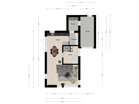 - Aangebouwde stenen garage