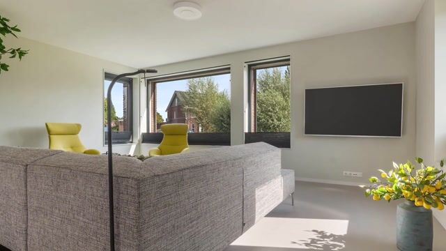 Bij binnenkomst in de entree/ hal heeft u toegang tot het moderne hangcloset met fontein en de woonkamer. De royale L-vormige woonkamer is voorzien van een gietvloer met vloerverwarming en -koeling. De moderne open keuken is uitgerust met hoogwaardige inbouwapparatuur, waaronder een Bora-kookplaat, vaatwasser, combi-magnetron, vriezer en een wijnkoeler.