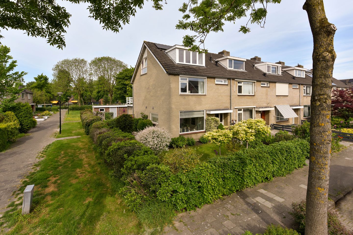 De woning ligt op een perceel van 264 m² en beschikt over een verzorgde voor-, zij- en achtertuin. In 2020 zijn de schuttingen vernieuwd en is er nieuwe bestrating aangelegd, zowel voor als achter. De ligging op de hoek zorgt voor extra privacy en ruimte rondom.