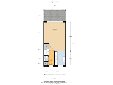 - 50 m² (10,00 meter diep en 5,00 meter breed)