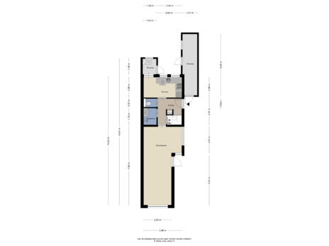 - 17 m² (5,00 meter diep en 3,00 meter breed)