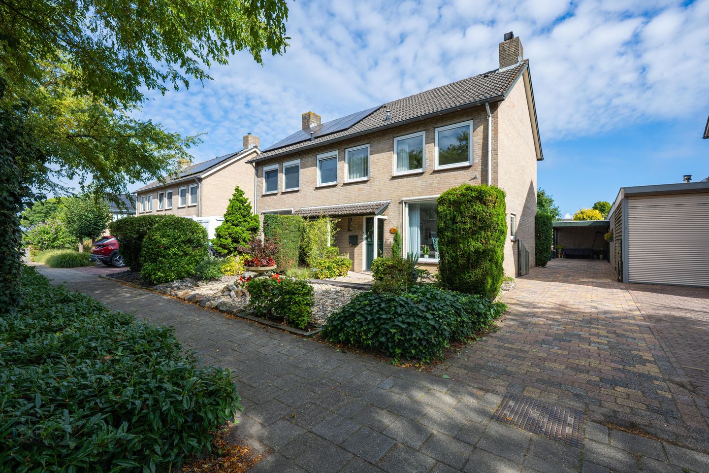 De zeer verassende achtertuin is maar liefst 19 meter diep en heeft diverse fijne zithoeken, een vijver, mooi straatwerk, een aantal groenborders en een mooie overkapping waar men al heel wat uurtjes van genoten heeft. Achterin de tuin zijn een 2 tal stenen bergingen en een aparte houtopslag. De lange oprit met carport, een paar parkeerplaatsen en een in stijl bijpassende voortuin maken dit fijne plekje compleet!
