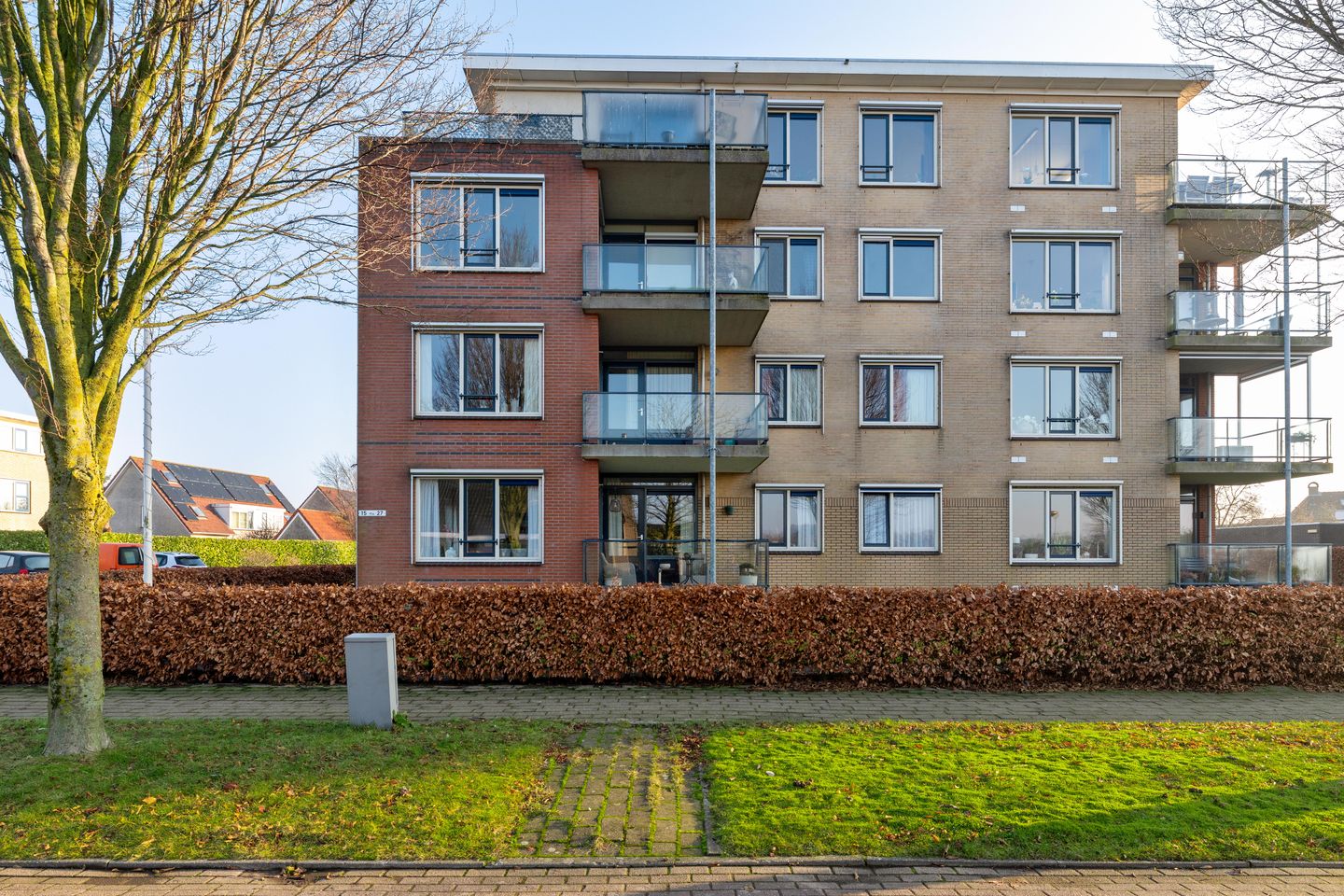 Het appartementencomplex beschikt over een centrale entree met hal, trappenhuis en liftinstallatie.