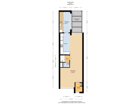 - 63 m² (14,40 meter diep en 4,40 meter breed)