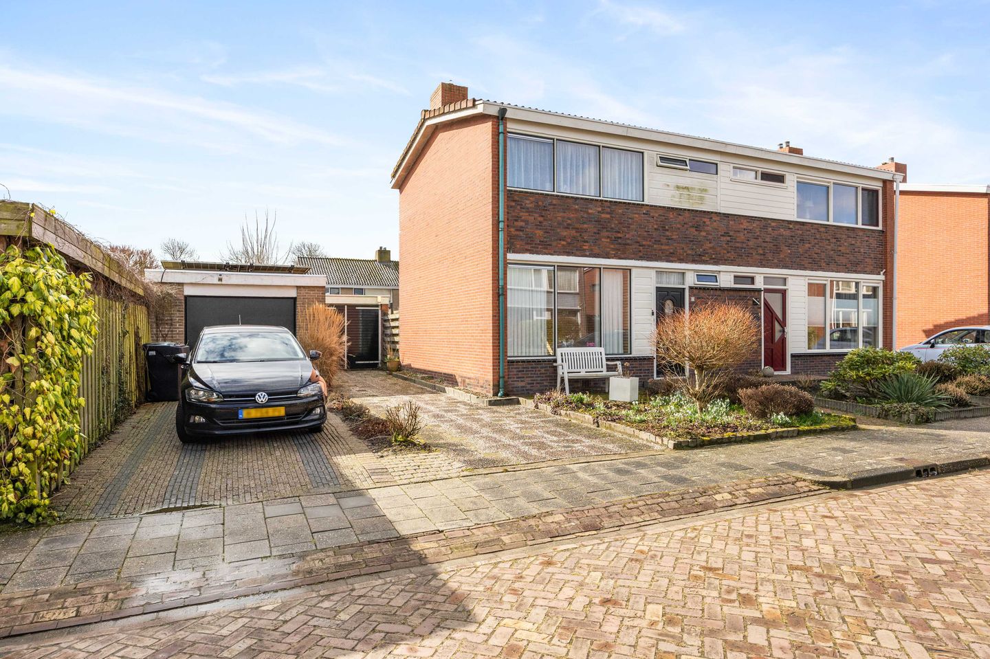 De woning is iets teruggeweken van de weg gelegen, wat de privacy aangenaam heeft bevorderd. De achtertuin is ca. 120 m² groot, kent veel groen en is gelegen op het zonnige zuidwesten. De ligging garandeert u volop bezonning tot laat in de avond. Voor de hobbyist zijn er prima mogelijkheden in de vrijstaande garage (ca. 2,75 x 5,70 mtr.).