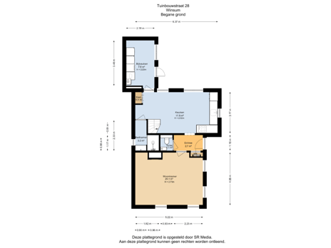 - 122 m² (12,00 meter diep en 10,20 meter breed)