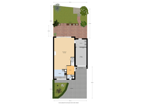 De ruime voortuin is voorzien van sierbestrating en groenborders. De voortuin biedt ook de mogelijkheid tot parkeren van 2 auto's op eigen terrein.