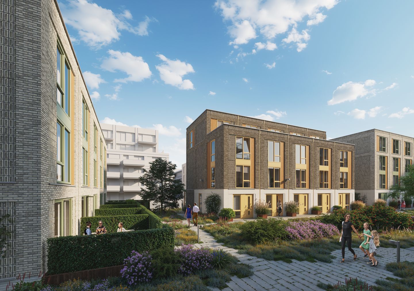 Op de 1e verdieping bevindt zich de woonkamer met uitzicht op de daktuin. De 2e verdieping biedt 2 slaapkamers en een badkamer met douche en draingoot, wastafel en toilet. Op de 3e verdieping vindt u een 3e slaapkamer. Hier is ook de technische ruimte met aansluitingen voor wasmachine en droger. Deze woningen combineren comfort, ruimtelijkheid en flexibiliteit – ideaal voor wie aan huis wil werken zonder in te leveren op woonkwaliteit.