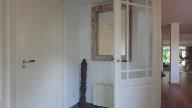 Hier bevinden zich de garderobe, het toilet, de wasruimte en de toegang tot de fietsenberging. Deze ligt aan de voorzijde van de woning en is ook rechtstreeks bereikbaar vanuit de voortuin, ideaal voor dagelijks gebruik. In deze ruimte bevindt zich tevens de meterkast. Vanuit de hal bereikt u de ruime keuken met eethoek.