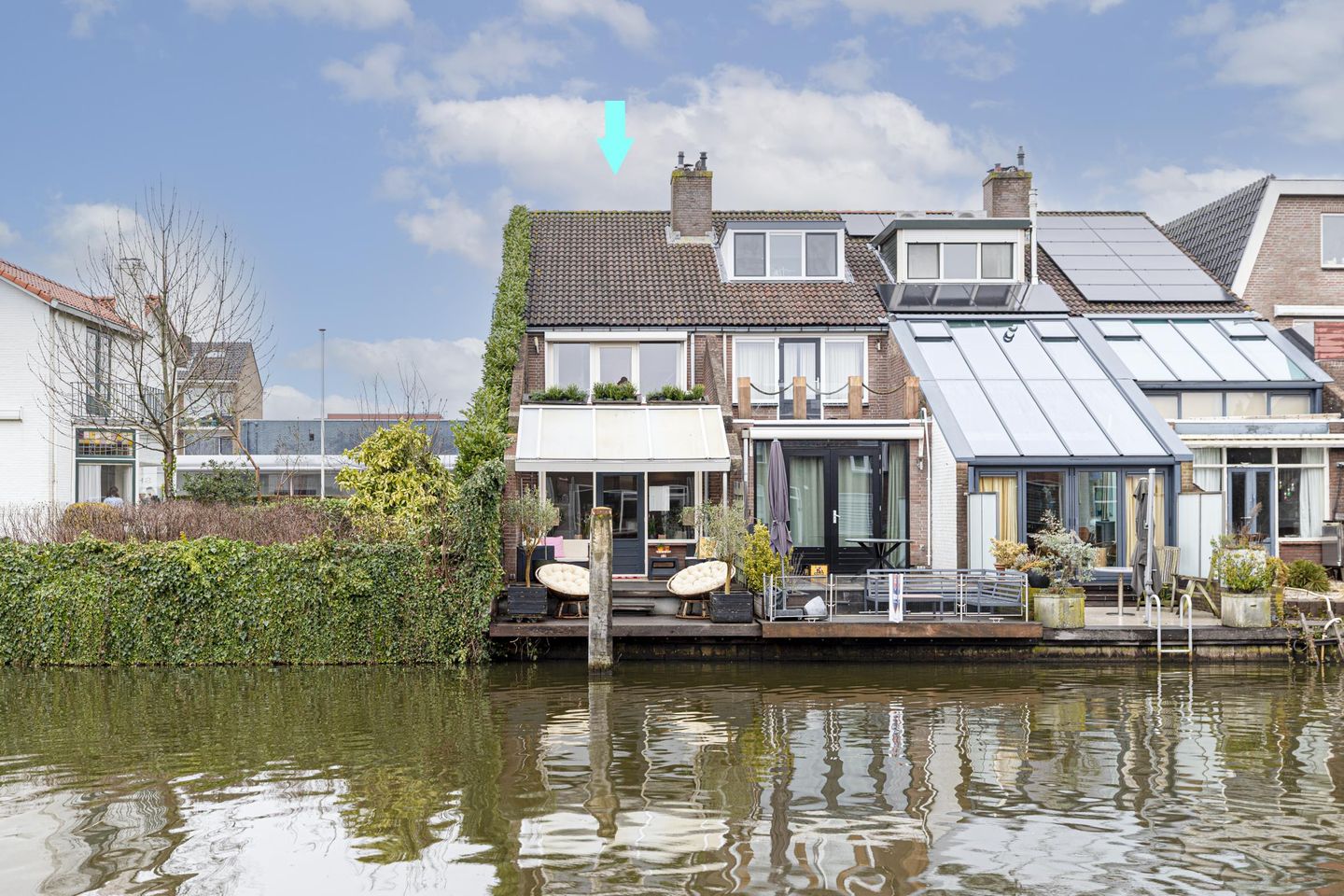 De zonnige achtertuin, vrijwel volledig op het zuiden gelegen, grenst direct aan het water. De tuin is deels overdekt en voorzien van een houten vlonder. Deze heerlijk buitenruimte biedt een unieke plek om volop te genieten van het wonen aan het water en het voorbijvaren van bootjes.