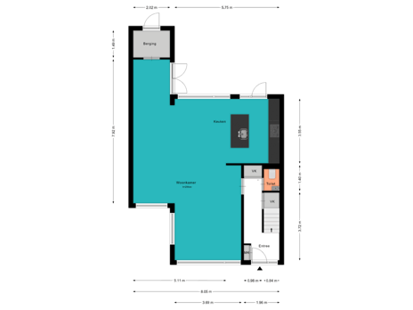 Voor de afmetingen en indeling raadpleeg de gedetailleerde plattegrond.