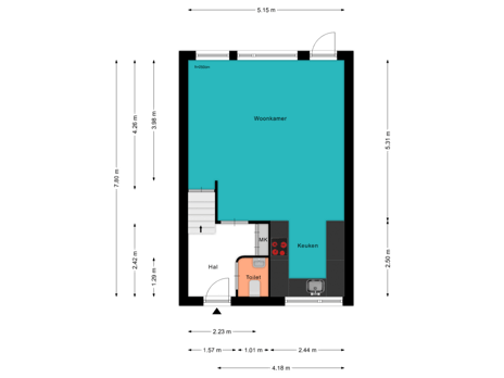 Voor de afmetingen en indeling raadpleeg de gedetailleerde plattegrond.