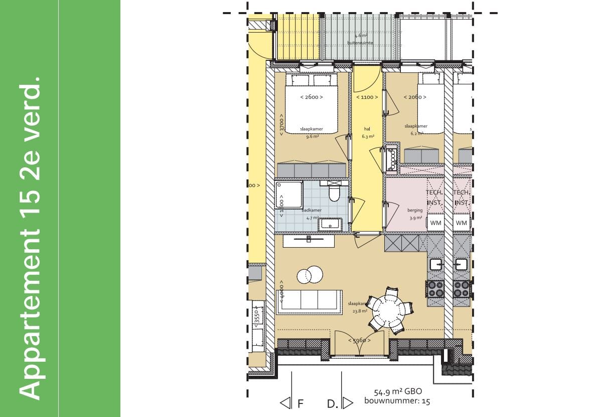 - 3 kamers (2 slaapkamers)