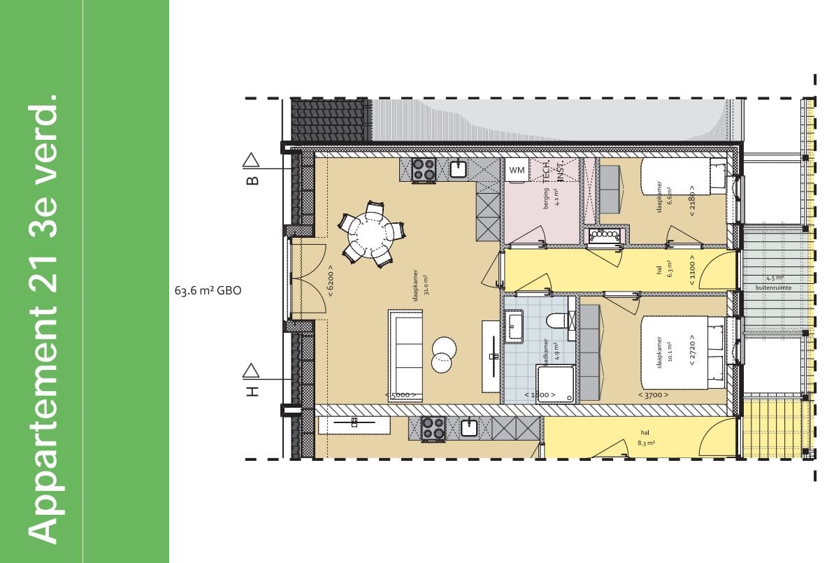 - 3 kamers (2 slaapkamers)