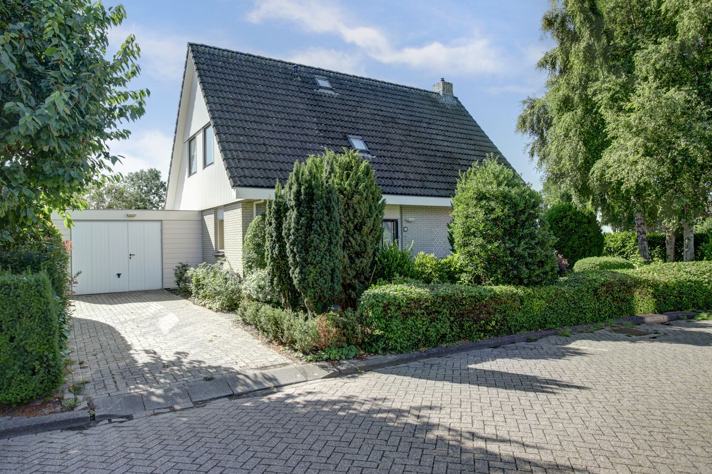 Aan de buitenzijde zijn diverse onderhoudsarme elementen toegepast. Zo is de topgevel aan de kant van de garage afgewerkt met Werzalit gevelbekleding, net als de garage zelf. Het platte dak van de garage, bijkeuken en berging is voorzien van een EPDM dakbedekking. De andere topgevel is nog afgewerkt met de originele houten betimmering.