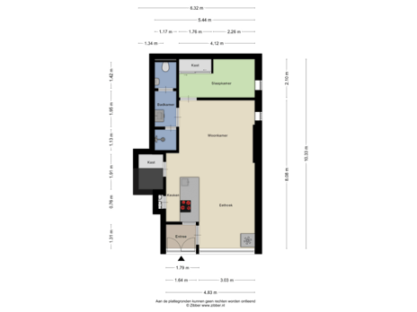 - 23 m² (6,42 meter diep en 3,60 meter breed)