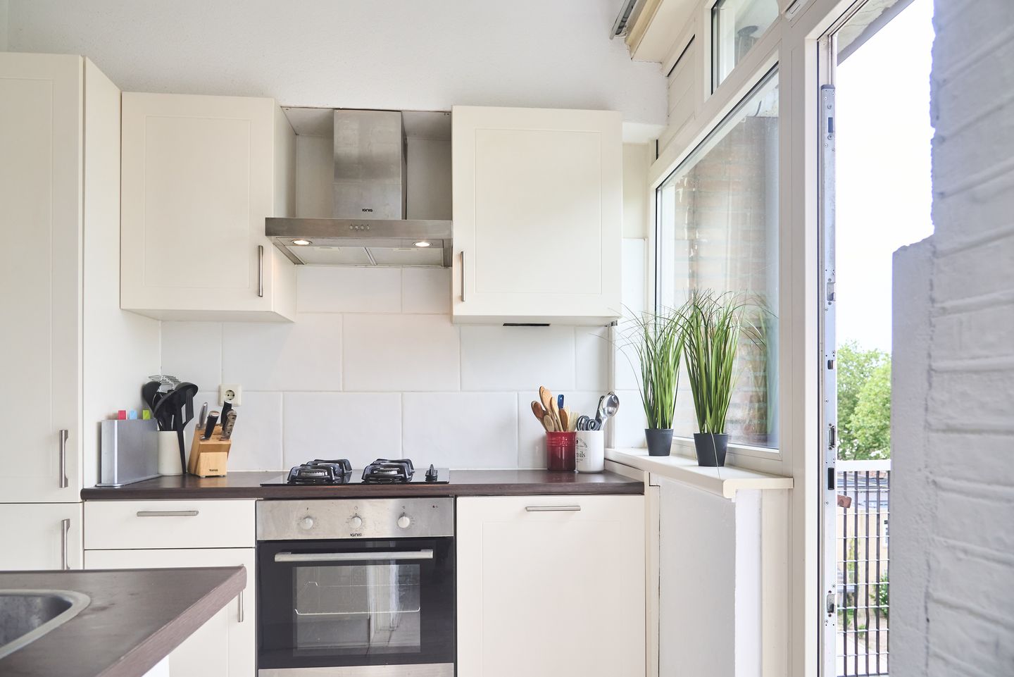 we enter the hall with a closet, bathroom with walk-in shower, hanging toilet and sink. Two bedrooms (previously 3), 1 with closet. The living room has a balcony at the front and back. The semi-open kitchen is equipped with various built-in appliances. You can enter the balcony from both the kitchen and the living room. There is also a shared courtyard on the ground floor where you can also sit. The location of the complex is very favorable. This means you are very close to the Market Square with its diversity of shops and the weekly market. The bus stop is in the street and the railway station is within cycling distance. The cozy Zaanbocht is also easily accessible by bike. Here you can relax and enjoy the cozy fair twice a year. In short, a nice apartment in a central location and with free parking! Make an appointment quickly for this nice apartment.