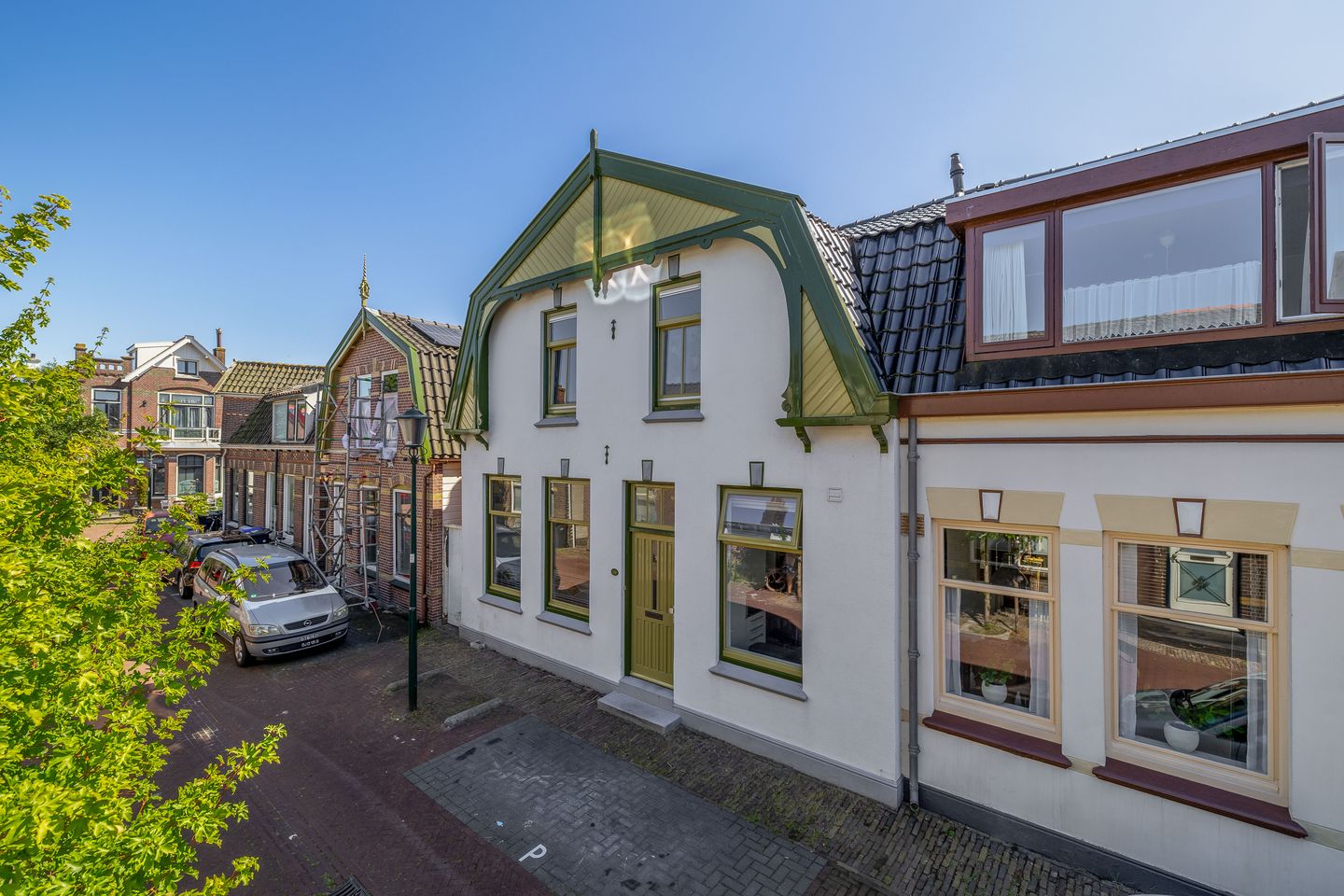 Met een breedte van circa 7.50 meter, de gestucte buitengevel en houtwerk, geschilderd in twee kleuren groen, maakt deze woning een geweldige indruk.