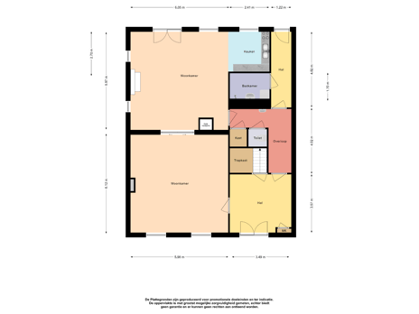 Er is toegang tot een half betegeld toilet met wasbakje en een ruime bergkast. Vanuit deze hal is er ook toegang tot de achterkamer.