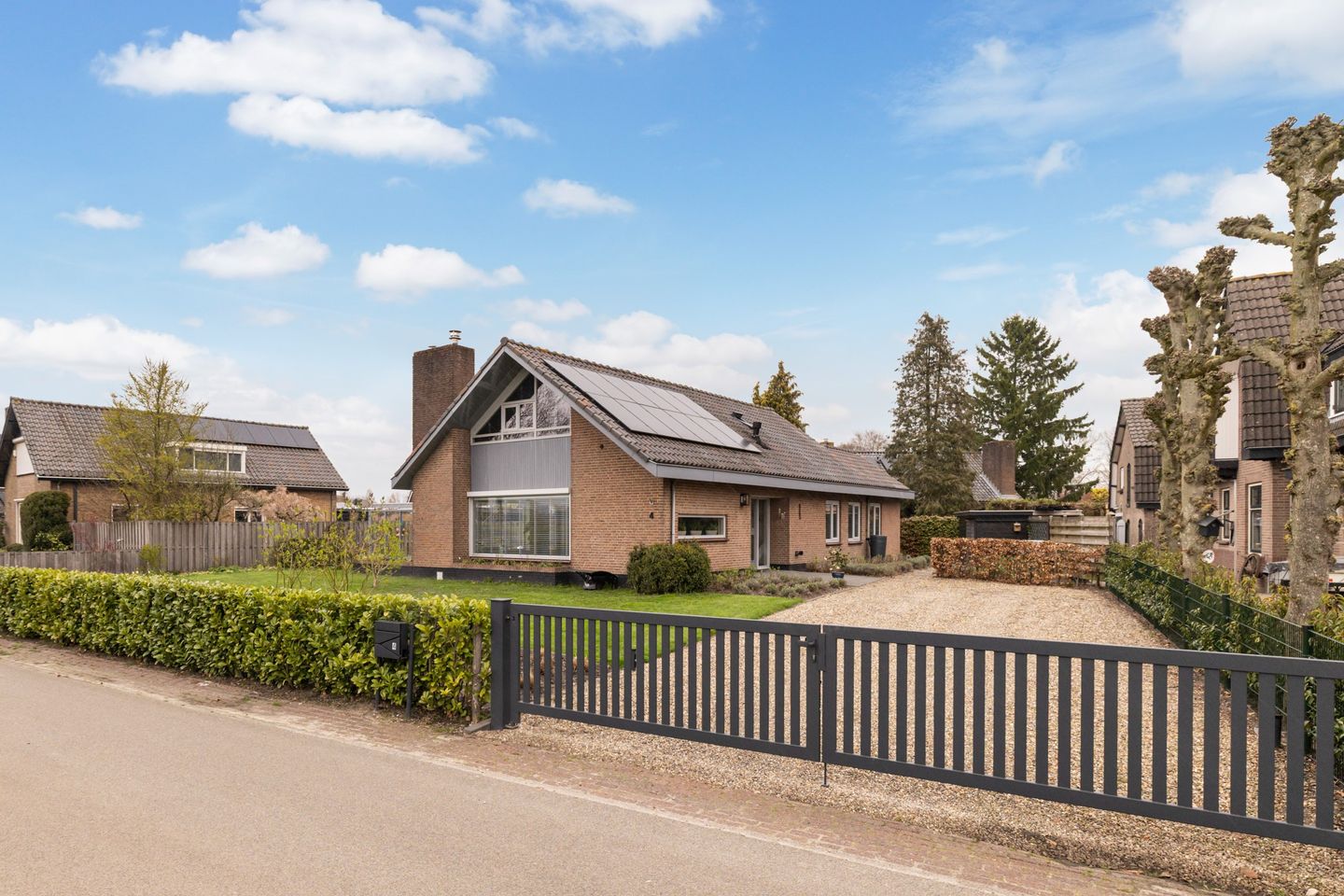 De ruime oprit biedt plaats aan maar liefst drie auto’s. De woning is voorzien van vloerverwarming en 12 zonnepanelen, wat bijdraagt aan een aangenaam wooncomfort en energiezuinigheid.