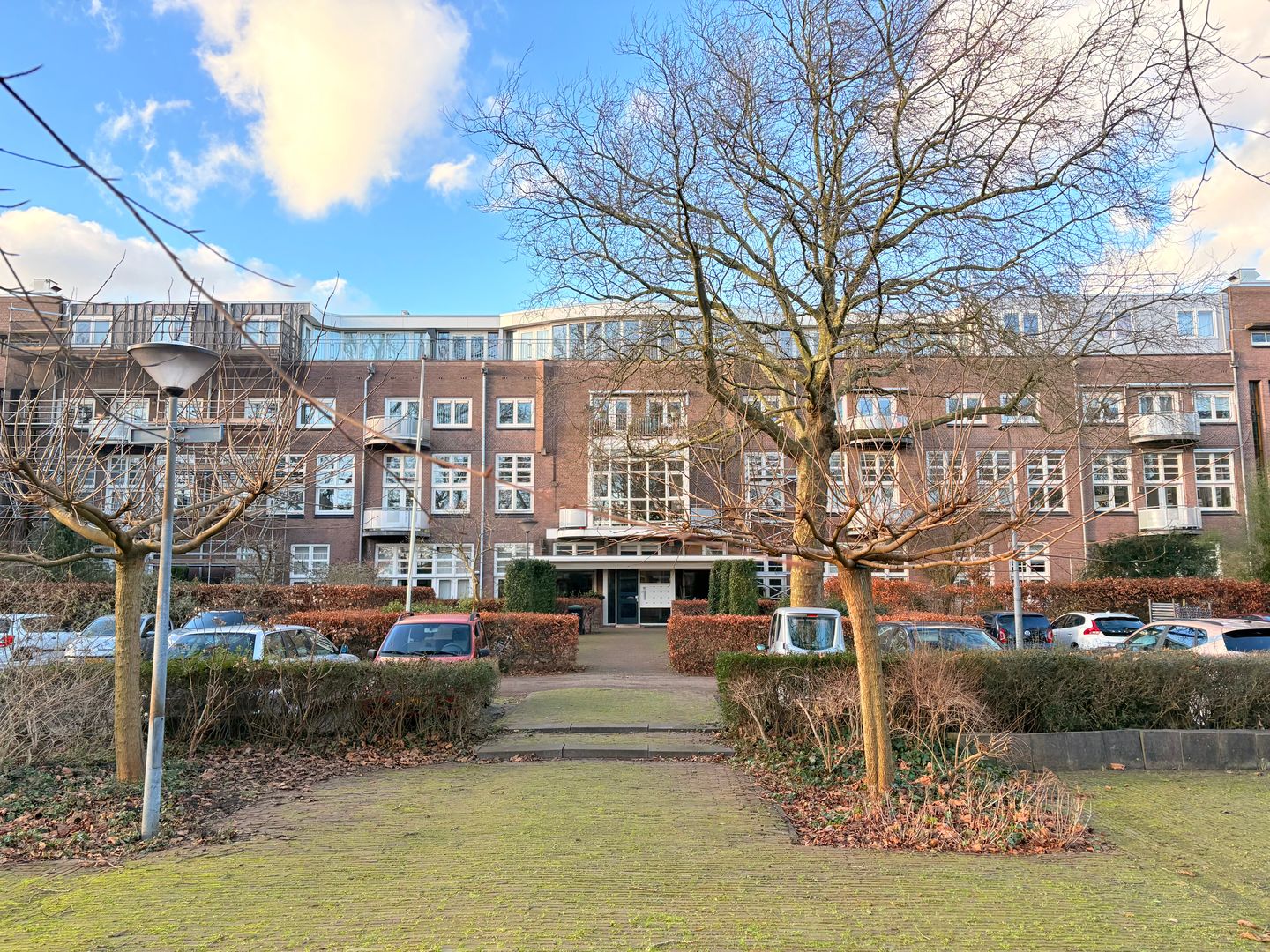 Fraai en statig appartementencomplex (Amsterdamse school) met parkachtige tuin