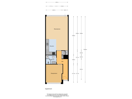 - 42 m² (8,10 meter diep en 5,34 meter breed)