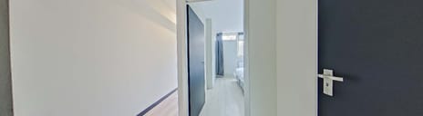 Bij binnenkomst kom je in de ruime hal, die toegang biedt tot alle vertrekken in de woning. Direct aan de linkerzijde bevindt zich de royale slaapkamer, groot genoeg voor een tweepersoonsbed, een ruime kast en eventueel een werkplek. De hal biedt verder toegang tot de badkamer.