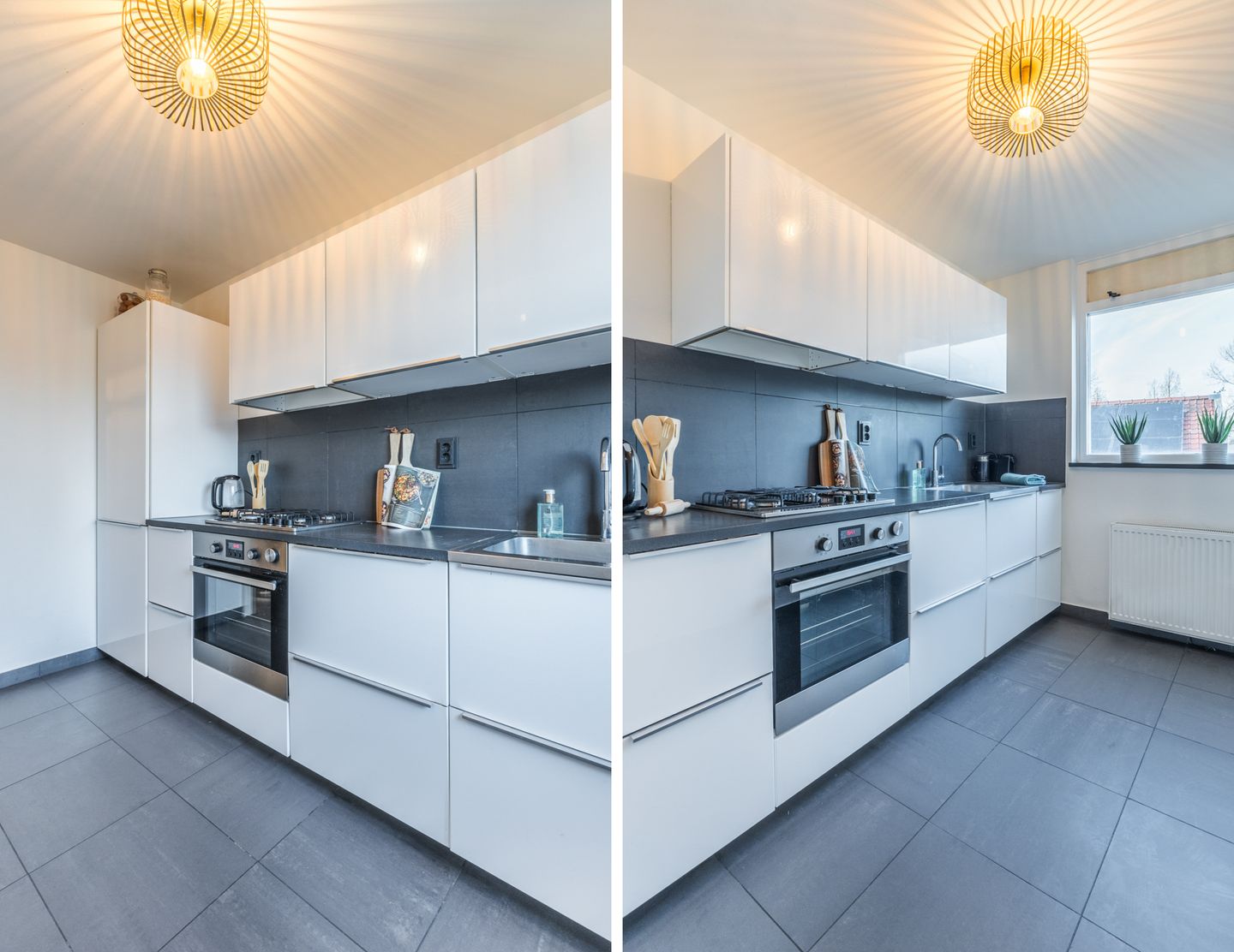 Moderne keuken voorzien van diverse inbouwapparatuur (afzuigkap is niet aanwezig)