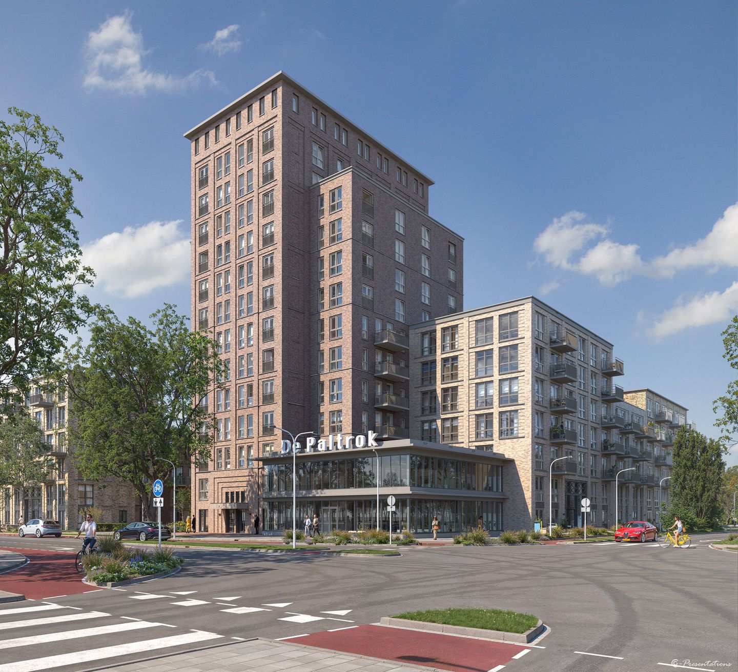 At the Holleman location, we will start the construction of De Paltrok Blok H (82 owner-occupied apartments), De Paltrok Blok E (15 owner-occupied apartments) and De Paltrok Blok F (35 owner-occupied apartments) in 2025. The sale of the apartments starts with Block H. Then it is the turn of Block E and Block F. There will also be a beautiful commercial space for offices, practices and/or other applications in the service sector.