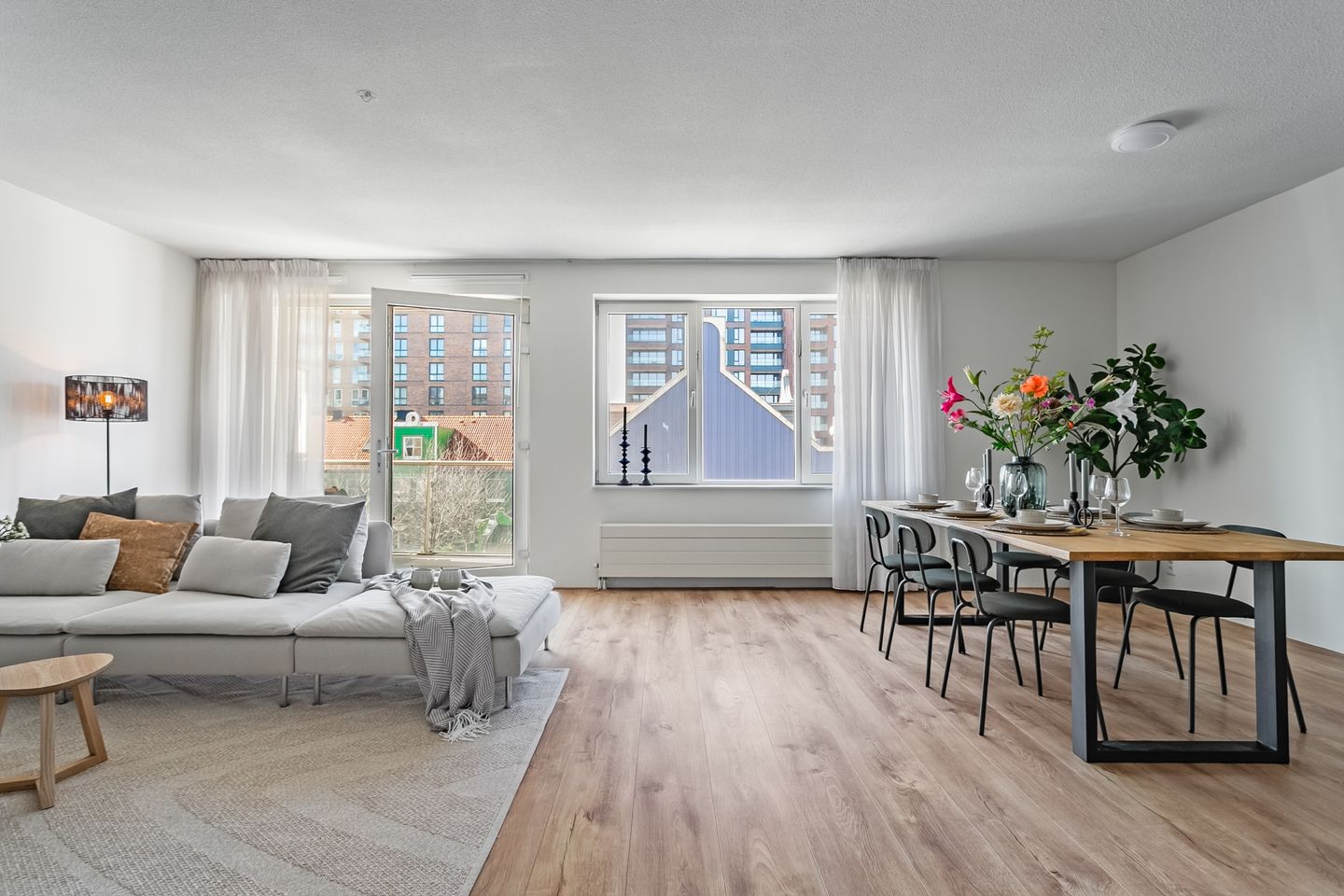 Bij binnenkomst valt direct de lichte en ruime woonkamer op. Dankzij de grote raampartijen en de gunstige ligging op de tweede verdieping geniet je hier de hele dag van een fijne natuurlijke lichtinval. De woonkamer biedt voldoende ruimte voor een comfortabele zithoek en eethoek, en vormt het hart van de woning. Via de woonkamer heb je toegang tot het balkon, waar je heerlijk kunt genieten van de middag- en avondzon. Perfect voor een kop koffie of een borrel na het werk.