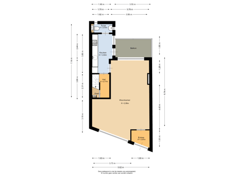 - 18 m² (3,35 meter diep en 5,50 meter breed)