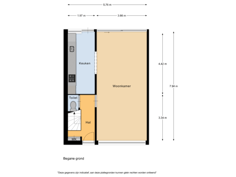 - 35 m² (5,80 meter diep en 5,98 meter breed)