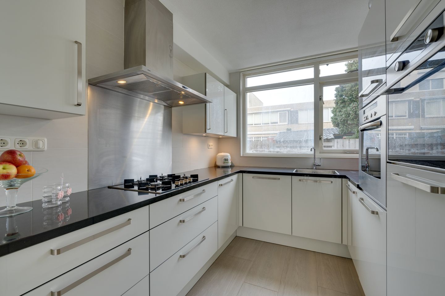 De moderne keuken uit 2016 is van alle gemakken voorzien en compleet uitgerust met inbouwapparatuur: een vaatwasser, gaskookplaat, combi-oven, afzuigkap, koelkast en stoomoven zijn allen aanwezig. Dit alles afgewerkt met een composieten werkblad. Of je nu een snelle doordeweekse maaltijd bereidt of uitgebreid kookt in het weekend, deze keuken biedt alle functionaliteit die je nodig hebt.
