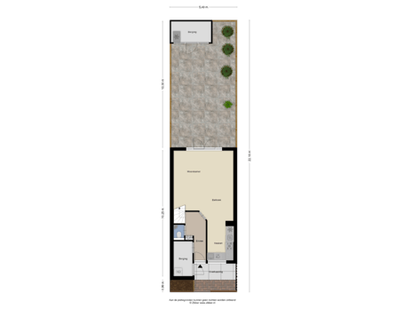 - 45 m² (9,00 meter diep en 5,00 meter breed)