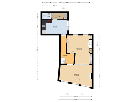 - 21 m² (6,00 meter diep en 3,50 meter breed)