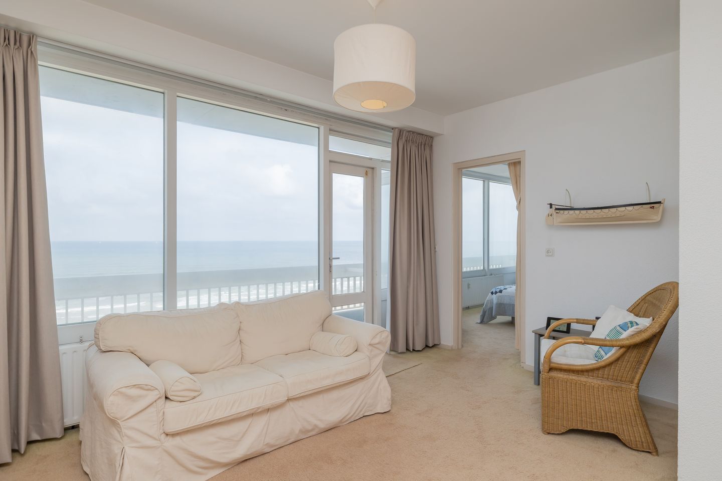 Vanuit de woonkamer heb je gelijk prachtig vrij uitzicht over zee want onmiddellijk het vakantiegevoel oproept. Via de deur in de woonkamer stap je het zonnige balkon op welke op het westen is gelegen. Het weidse uitzicht over zee, ook richting IJmuiden of Noordwijk is werkelijk elke dag een andere beleving.