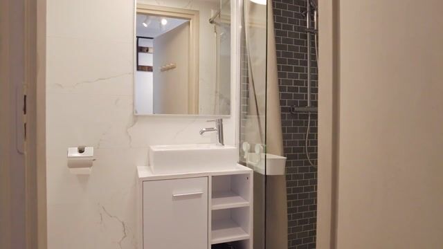 - Douche, inloopdouche, wastafel, en wastafelmeubel