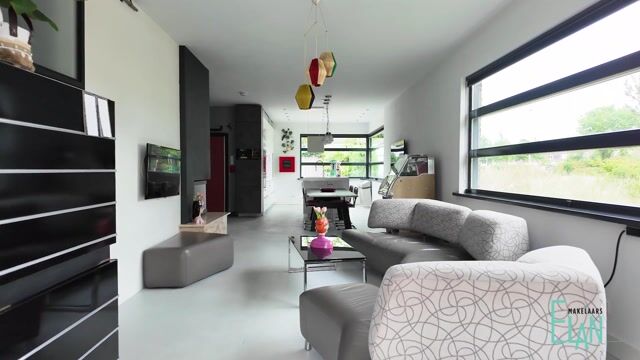 De bungalow heeft een sfeervolle en moderne uitstraling met veel daglicht dankzij de grote raampartijen en de vrije ligging. Het hoofdappartement biedt een comfortabele leefruimte met een strakke gietvloer en vloerverwarming door de gehele woning – perfect voor een warm en stijlvol interieur. De praktische indeling van beide appartementen maakt de woning geschikt voor zowel eigen gebruik als (gedeeltelijke) verhuur.
