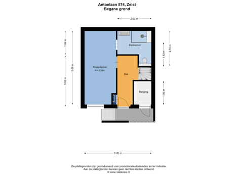 - 21 m² (5,75 meter diep en 3,70 meter breed)