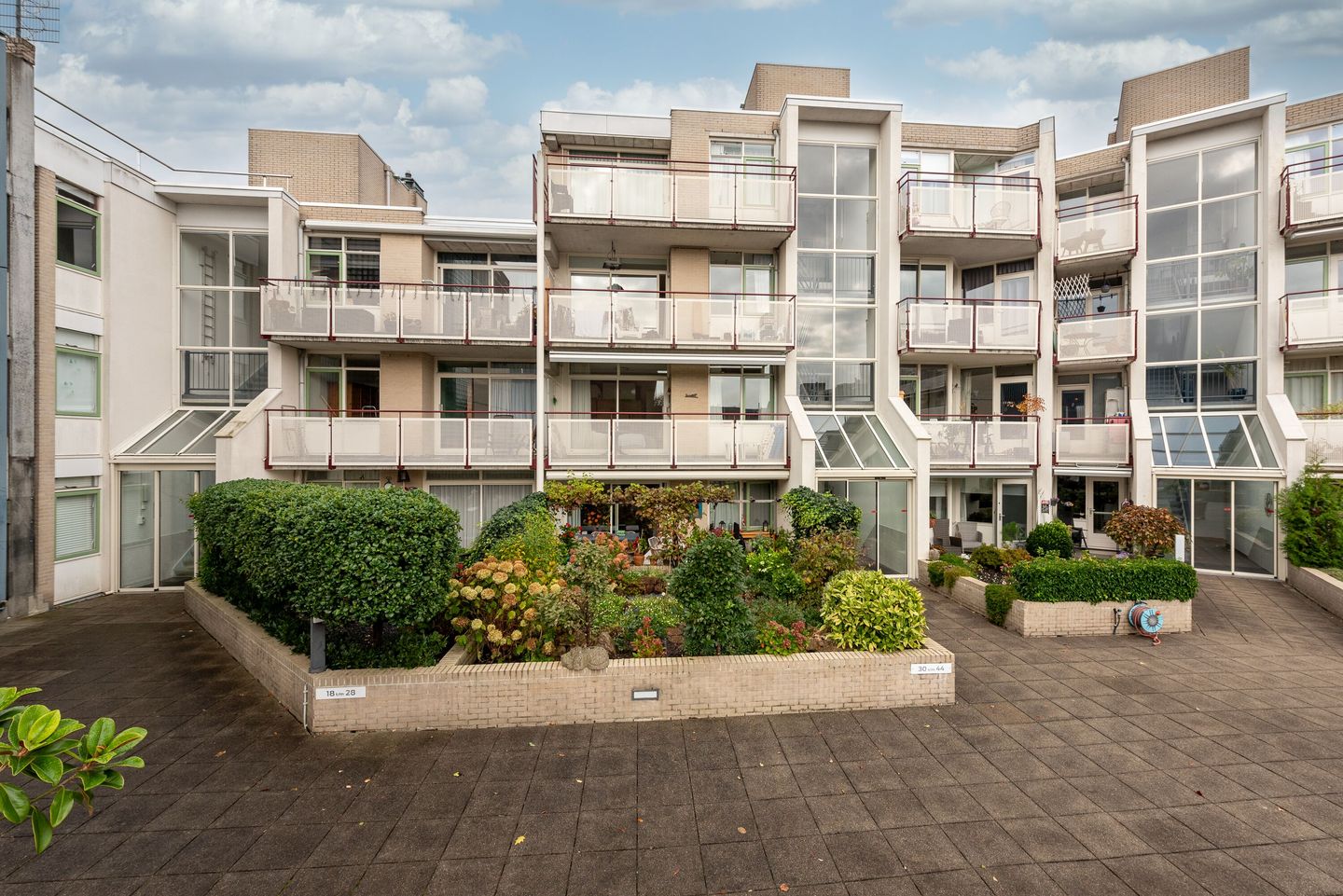 Algemene entree met bellentableau, brievenbussen, lift en trappenhuis. Fraai aangelegd binnenterrein met groen en gezellige zitjes. Tweede liftinstallatie en trappenhuis leiden naar de verdieping van het appartement.