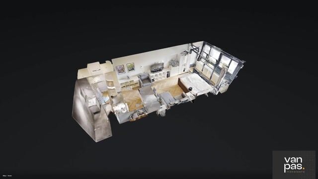 Entree, hal met meterkast. Vanuit de hal bereik je de moderne badkamer, die is uitgevoerd met een inloopdouche, wastafel en toilet. De woon-/slaapkamer is licht en efficiënt ingedeeld, met voldoende ruimte voor zowel een zithoek als een slaapgedeelte. Aangrenzend aan de woonkamer bevindt zich de loggia, voorzien van onder andere een schuifraam, waardoor je optimaal kunt genieten van licht, buitengevoel en een prachtig uitzicht, ongeacht het seizoen. De moderne keuken is opgesteld in een praktische U-opstelling en voorzien van een gezellige bar waaraan gegeten kan worden en beschikt over onder andere de volgende inbouwapparatuur: gaskookplaat, elektrische oven, vaatwasser en een afzuigkap. Tevens bevindt zich hier de wasmachine, die wordt meegeleverd. Het gehele appartement is voorzien van een visgraat-PVC-vloer.
