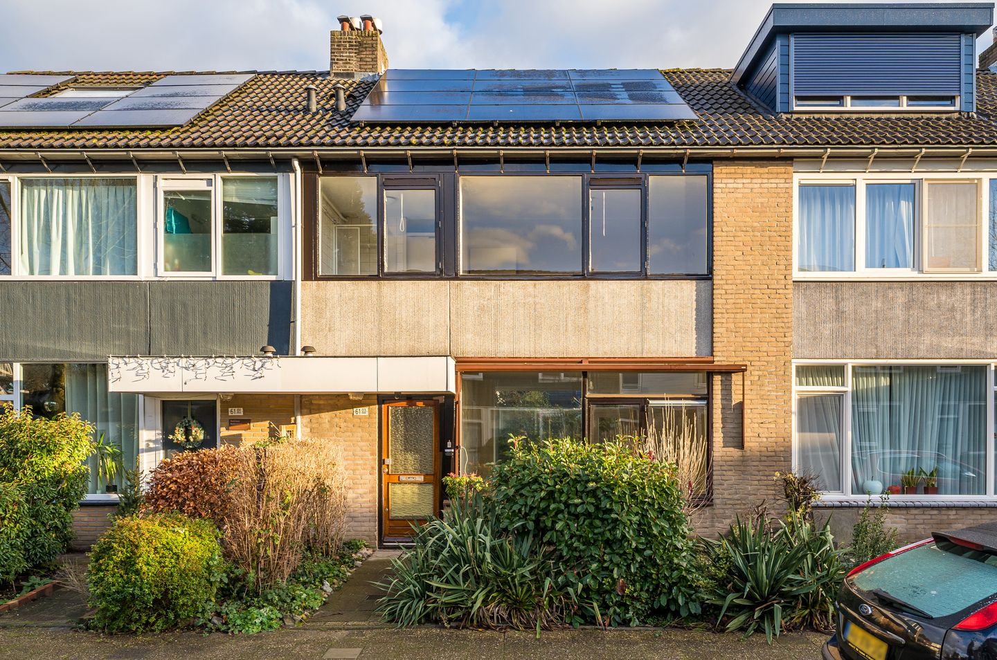 - Buitenzonwering, dakraam, glasvezelkabel, natuurlijke ventilatie, en zonnepanelen