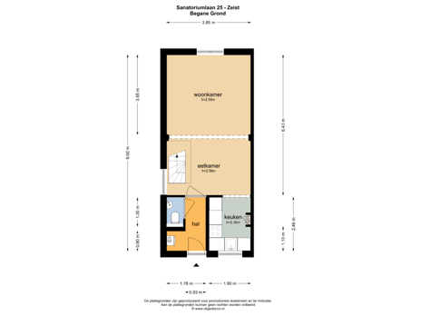 - 40 m² (10,00 meter diep en 4,00 meter breed)