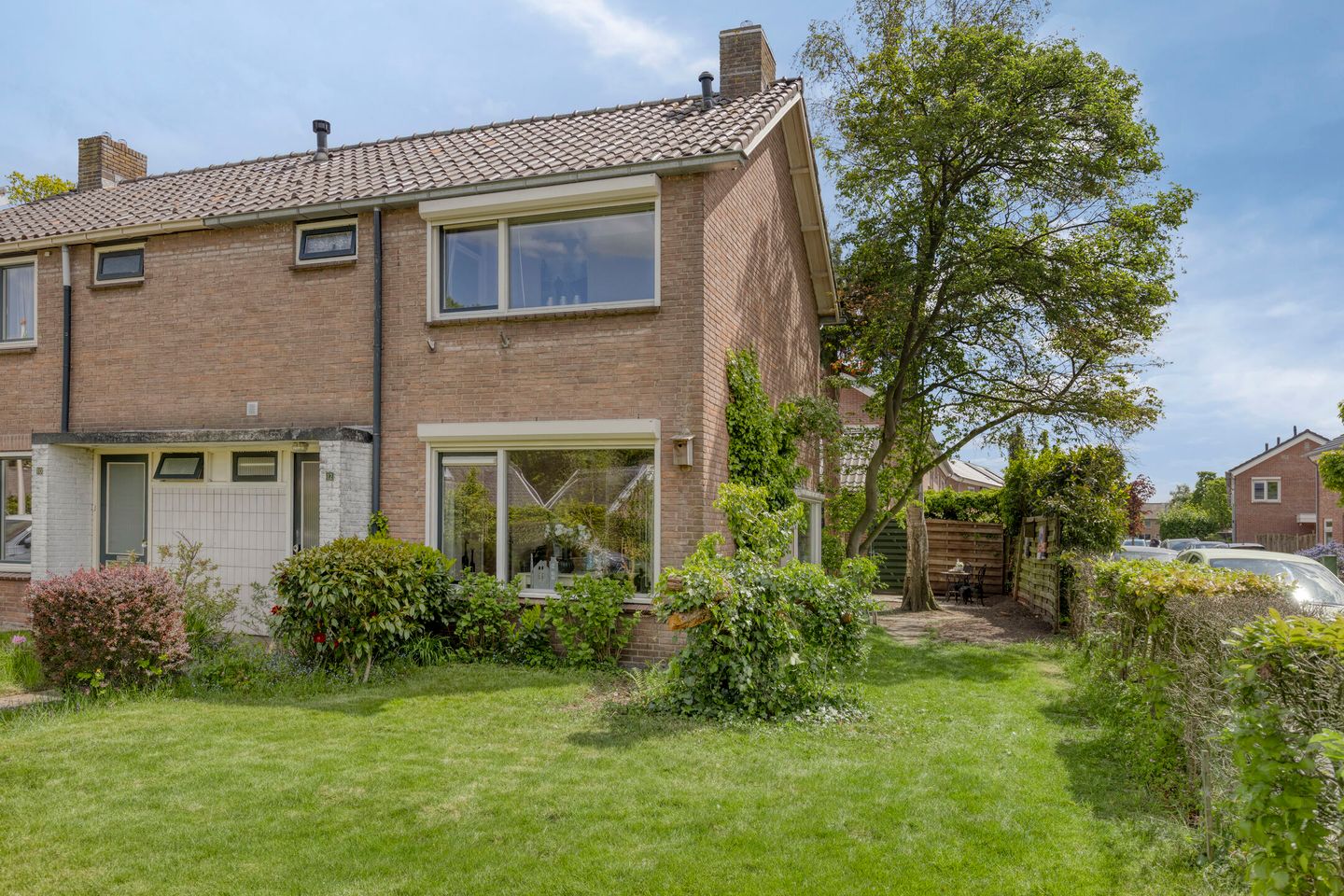 Aan de voorzijde ligt een royale voortuin met een beukenhaag en struiken als afscheiding , een flink grasveld en een pad dat leidt naar de voordeur. Aan de zijkant is er een puntstuk voor het gebruik van grondwater voor diverse doeleinden, zoals het beregenen van de tuin. De achtertuin bestaat uit een flink deel bestrating en een aantal bomen en struiken, en is gelegen op het zuidoosten. U kunt de hele dag heerlijk van de zon genieten want de zon draait “om de woning heen”.