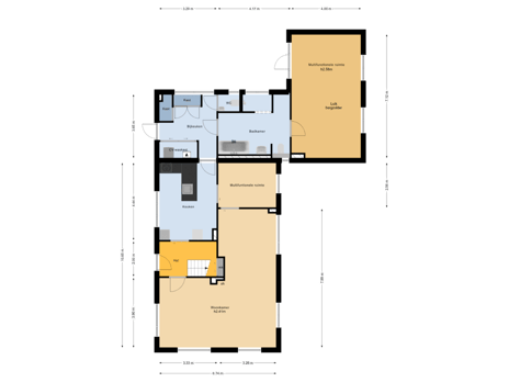 Begane grond: Hoofdentree in hal met trap en meterkast. Toegang tot ruime en lichte L- vormige woonkamer aan de voorzijde. Deze woonkamer is sfeervol door de hout haard en er is heerlijk veel licht aanwezig door de grote raampartijen. Hiernaast is nog een aparte multifunctionele ruimte aanwezig, ideaal als werkkamer, speelkamer of hobby ruimte.