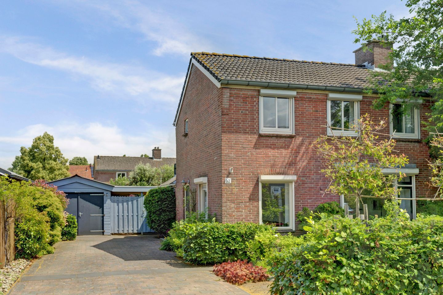 Dankzij de grote oprit ben je altijd verzekert van voldoende parkeerruimte voor meerdere auto’s. Hier kan je ook een eigen laadpaal plaatsen. Daarnaast beschikt je over een grote vrijstaande houten garage en een grote separate berging voor nog meer gemak.