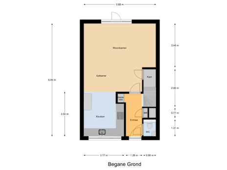 - 66 m² (11,00 meter diep en 6,00 meter breed)